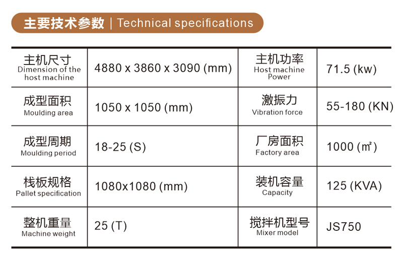 >采用西德原版高性能振搗系統(tǒng),振動強勁,成型周期短,產(chǎn)品密實度高。