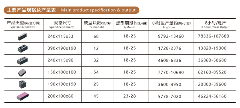 用途:生產(chǎn)各種外墻砌塊、內(nèi)墻砌塊、花墻砌塊、樓板塊、護堤塊、連鎖塊、路緣石等砌塊。增加面料裝置可生產(chǎn)彩色路面磚。